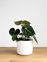 Anthurium Clarinervium is the plant equivalent of luxury loungewear—refined, velvety, and utterly irresistible. Native to the limestone cliffs of Chiapas, Mexico, this striking aroid is known for its thick, heart-shaped leaves that feel like suede and flaunt crisp, white veins like an artist’s sketch.